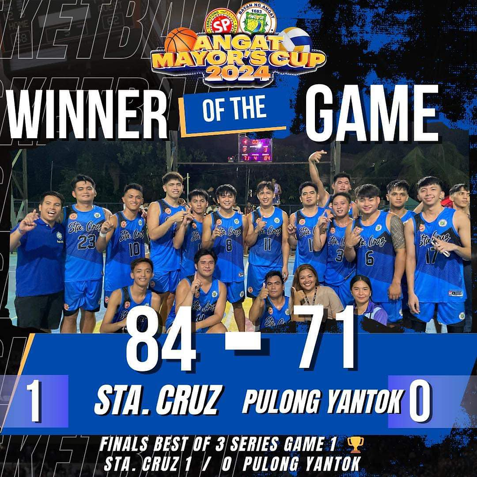 Finals │Game 1 Result │Angat, BulacanJun 12, 20241 min read𝐅𝐈𝐍𝐀𝐋𝐒 │ 𝗚𝗔𝗠𝗘 1 𝗥𝗘𝗦𝗨𝗟𝗧June 11, 2024 │ BasketballPULONG YANTOK (71) vs. STA. CRUZ (84)PLAYER OF THE GAME#14 JASPER ANDRES - 26pts#AngatMayorsCup2024#AsensoAtReporma#IangatAngAngat
